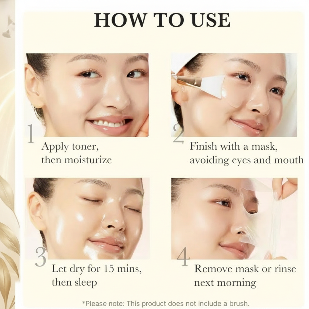 In the morning, you can gently peel off the mask or rinse it away with lukewarm water.