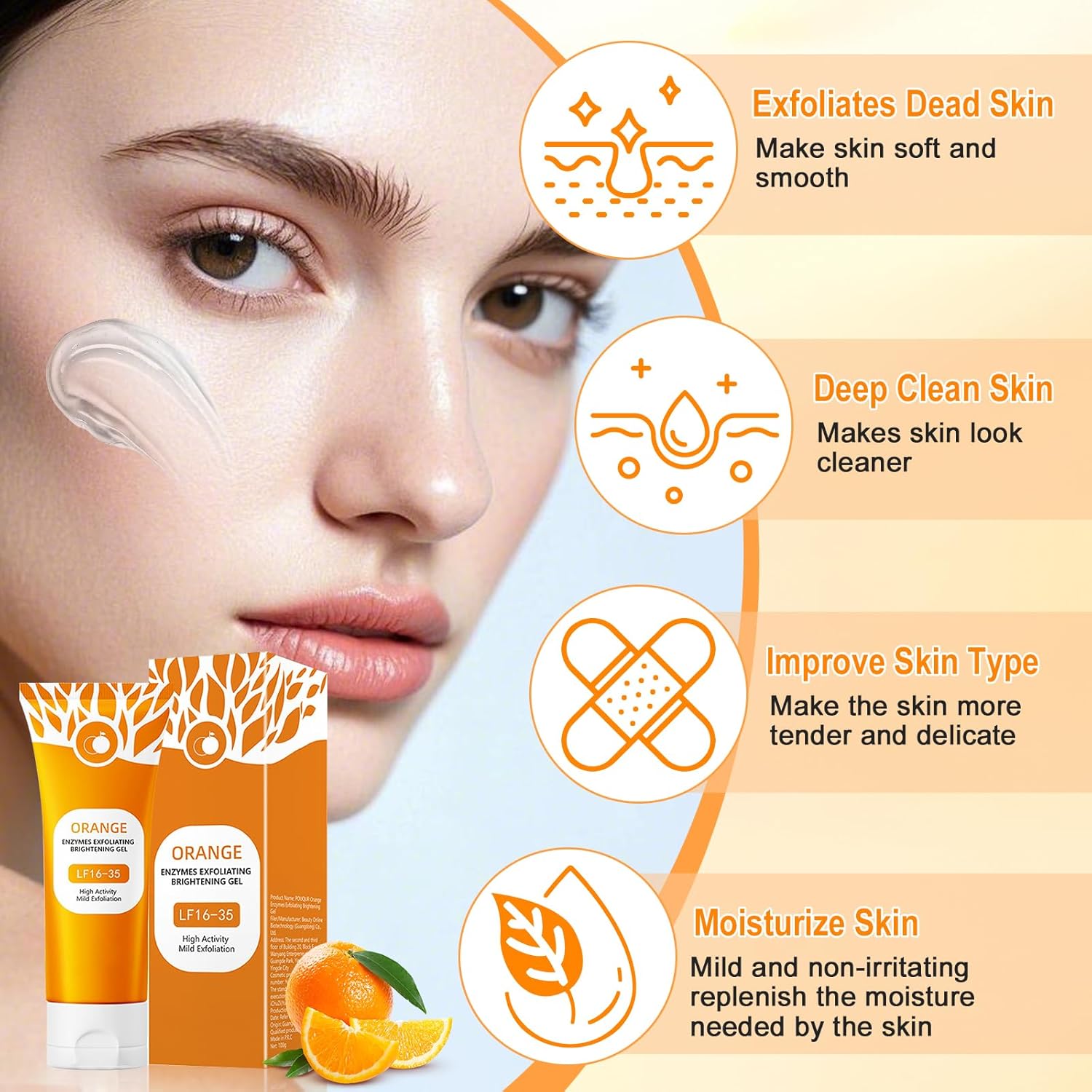 Orange Enzyme Exfoliating Gel gently removes dead skin cells and impurities using natural orange enzymes to reveal smoother, brighter skin. It deeply cleanses and unclogs pores while moisturizing to keep skin soft and refreshed. With a gentle, non-irritating formula suitable for daily use, this exfoliating gel is ideal for all skin types, including sensitive skin.