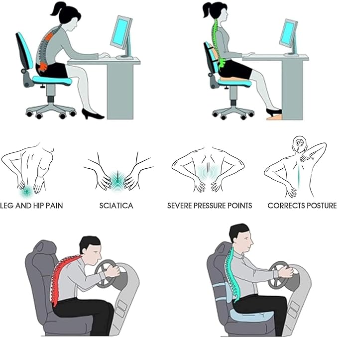 Designed to evenly distribute weight and reduce pressure on hips and tailbone, this cushion provides lasting comfort for car, office, and home use.