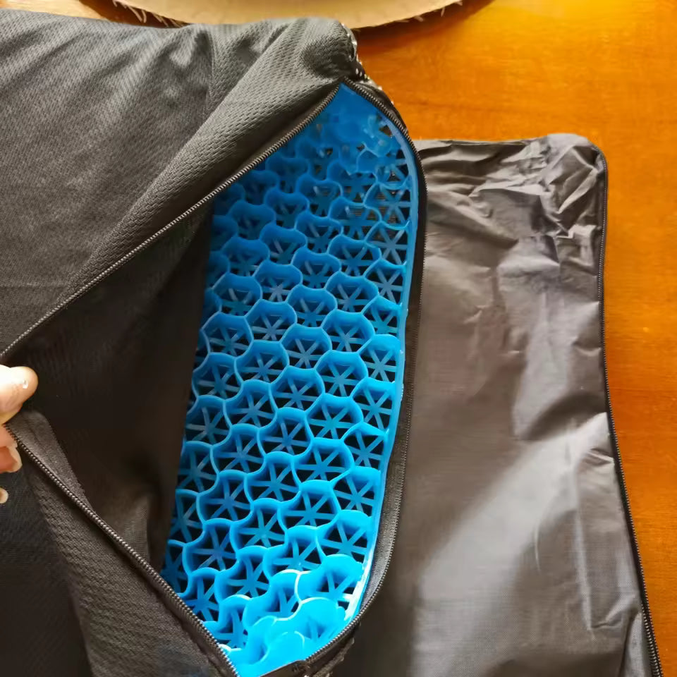 Beat the heat while driving with this silicone ice pad car seat cushion. Its 3D honeycomb gel design improves airflow, reduces heat and sweating, and provides pressure-relief support for long sitting hours. Perfect for car, office, and home use.